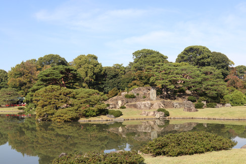 Rikugien is a kaiyu-style or circuit/walk around style daimyo garden typical of the Edo period. The garden was designed in 1702 by the lord of Kawagoe domain, who was commissioned by the 5th shogun. The tranquil garden shows a wide range of beautiful viewing spots while strolling around the pond. In 1878 the garden became a villa of the founder of Mitsubishi, with the Iwasaki family dominating the garden to Tokyo city in 1938. In 1953 the garden became not only a cultural heritage importance but also a special place of scenic beauty. It was certainly a lovely garden and we both fully enjoyed the walkaround.